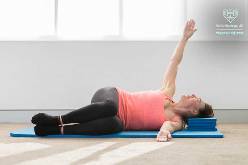 - الاستلقاء على الجانب مع ثني الركبتين وذراع مثني تحت الرأس والأخر ممدد في مستوى الكتف.